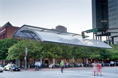 FlyingSaucer飛碟餐廳是德克薩斯州沃思堡市中心最繁忙的餐廳和酒吧。它有一個(gè)大型戶外用餐庭院,這個(gè)戶外區(qū)域種植了20多棵成熟的樹木,可德克薩斯州陽(yáng)光猛烈,受保護(hù)的樹木無(wú)法為顧客提供足夠的庇護(hù)。