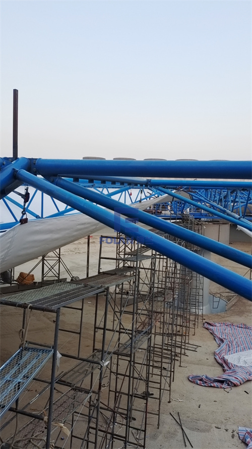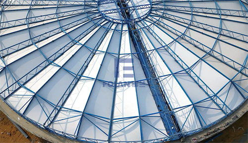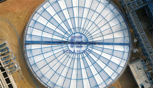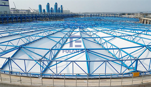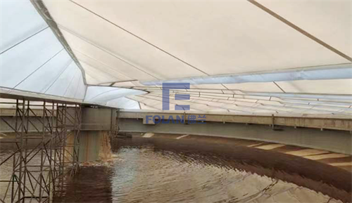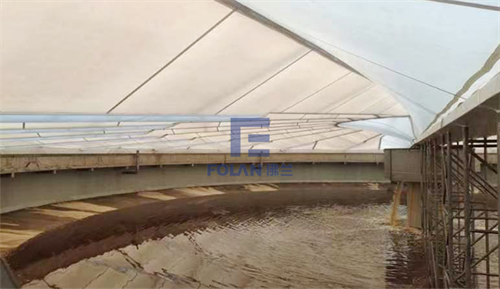 福建某污水池加蓋項目,包含4個直徑60米的初沉池和2個直徑36米的污泥濃縮池,膜安裝面積達(dá)16000多平方米。
