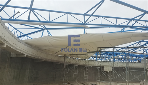 經(jīng)設(shè)計核算,福建某污水池加蓋項目,采用海德斯白色PVDF膜材,抗腐蝕抗酸堿,抗拉強度約8000N/cm。