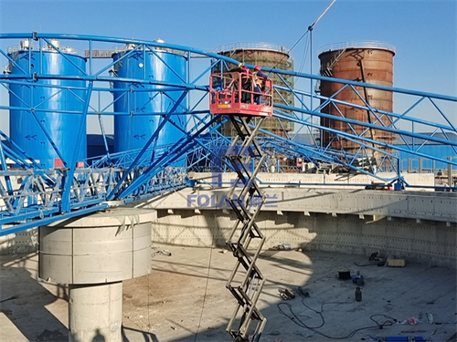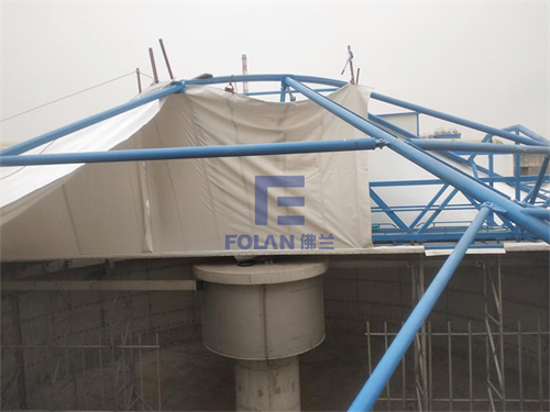 考慮到圓形池能夠依靠周邊傳動(dòng)推動(dòng)集氣罩運(yùn)行,佛蘭空間為其設(shè)計(jì)了隨動(dòng)式污水池反吊膜加蓋方案。
