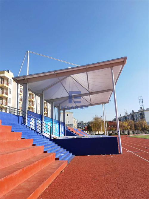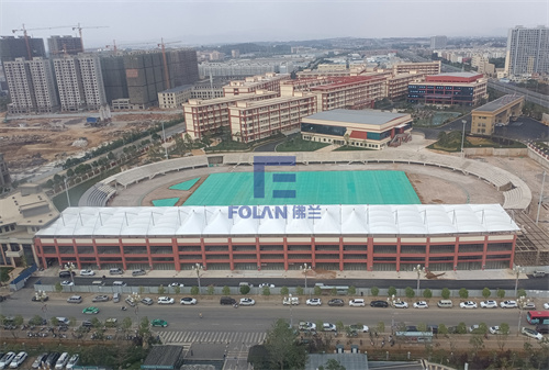 根據校方需求,佛蘭空間結合新校區(qū)已有建筑元素,精心設計了學校體育看臺、長廊,門頭等9處膜結構建筑。