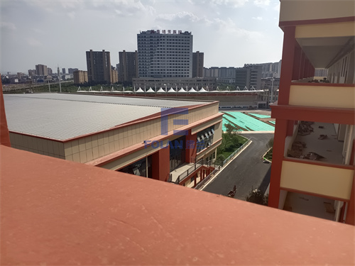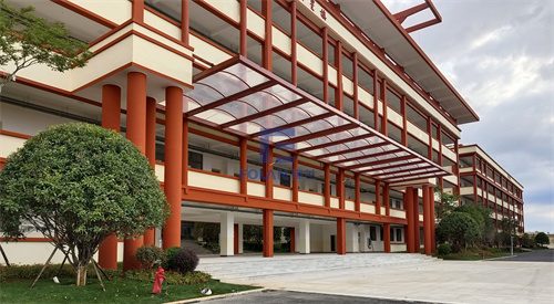 ETFE,質輕,自潔性好,透光率高,已在很多建筑翻新時替代了厚重的玻璃材料。陸良北辰中學新校區(qū)領導,綜合玻璃和ETFE的優(yōu)劣勢后,在信息樓、教學樓及會堂,都建造了ETFE長廊,膜面積達1500平方米。