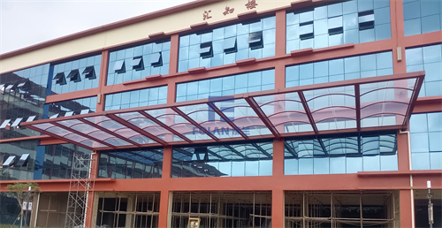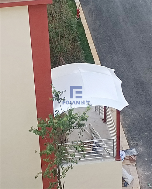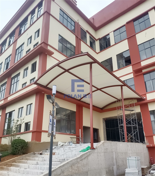 除了音體館門頭,該校報告廳2側及會堂后側出口也建造了膜結構門頭。