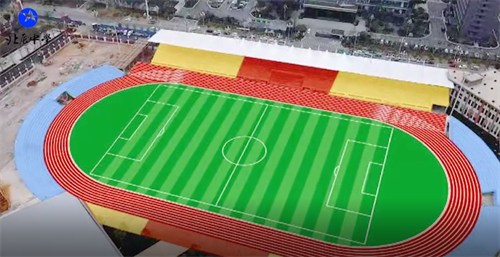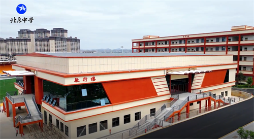 陸良北辰中學新校區(qū)體育看臺,面積約2000平方米,骨架膜結構,采用竹節(jié)拱和吊帽造型相結合,帽子頂部設有紅色圓環(huán)作為裝飾,和校園主題色形成呼應。