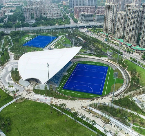 拱墅運(yùn)河體育公園體育場為亞運(yùn)會曲棍球項(xiàng)目比賽場地,位于杭州市拱墅區(qū)。建筑造型取自江南油紙傘的骨架,造型輕盈優(yōu)美。