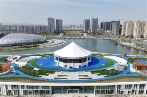 亞運(yùn)會三人制籃球賽將在這里舉行,這也是全世界首個固定的三人籃球場館,頂部運(yùn)用鋼膜結(jié)構(gòu)蓋頂。