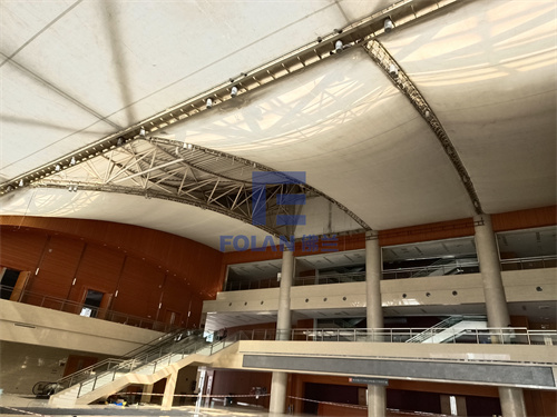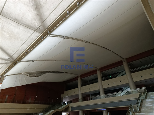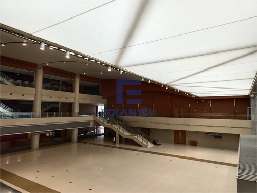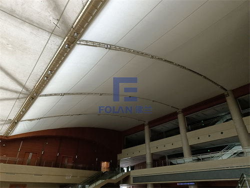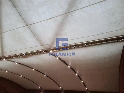 考慮到會議中心的吸音性與自潔性,在重新更換膜材時,佛蘭公司采用了PTFE內(nèi)膜。PTFE內(nèi)膜有著更舒適的光學性能及更好的自潔性、吸音性和安全性,既能營造舒適明亮的會議中心室內(nèi)環(huán)境,還能起到美化和提升室內(nèi)逼格的作用!