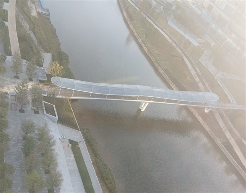 前段時間,佛蘭空間在深圳新竣工了一座獨(dú)特的ETFE人行天橋。這座天橋以輕盈的ETFE暗透明鍍點(diǎn)膜材鋪設(shè)于潔白的鋼骨架之上,整體結(jié)構(gòu)輕盈飄逸,橫亙于河流之上,不僅為市民提供了更加舒適、美觀、安全的通行環(huán)境,還為城市增添了一道亮麗的風(fēng)景線。