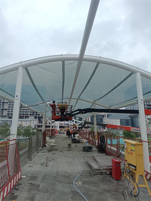 在施工過程中,佛蘭空間項目施工人員認(rèn)真對待每一道施工工序,從鋼構(gòu)的打磨除銹,噴漆,預(yù)拼裝和吊裝,再到膜材的吊裝和張拉固定,每個環(huán)節(jié)都一絲不茍,嚴(yán)格按照設(shè)計要求和相關(guān)標(biāo)準(zhǔn)進(jìn)行施工,確保了工程質(zhì)量和進(jìn)度。