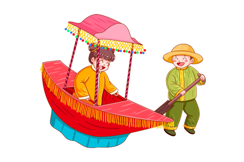 劃旱船,民間傳說是為了紀念治水有功的大禹的。旱船不是真船,多用兩片薄板,鋸成船形,以竹木扎成,再蒙以彩布,套系在姑娘的腰間,如同坐于船中一樣,手里拿著槳,做劃行的姿勢,一面跑,一面唱些地方小調(diào),邊歌邊舞,這就是劃旱船。