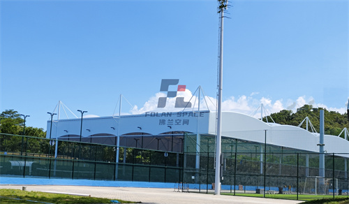 為更好地遮斜陽擋風(fēng)雨和凸顯膜結(jié)構(gòu)建筑的美觀性,佛蘭空間在球場側(cè)面設(shè)計(jì)時(shí),特意在四周加了白色的立面膜材,可更好地防西曬和掃雨,充分發(fā)揮膜結(jié)構(gòu)建筑的優(yōu)勢。