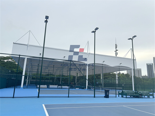 深圳大運(yùn)中心三片網(wǎng)球場,占地面積約2500㎡,為給網(wǎng)球愛好者提供一個(gè)舒適的打球體驗(yàn),項(xiàng)目業(yè)主方要求在其頂部增建一個(gè)膜結(jié)構(gòu)雨棚。