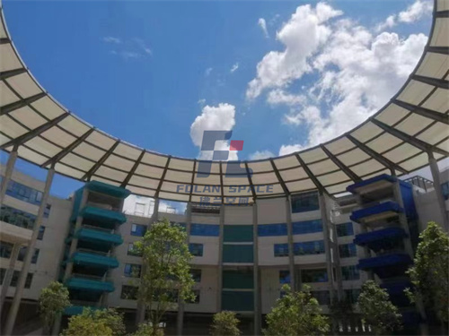 該學(xué)校天幕使用的是PVDF高透光膜材,無論白天還是夜晚,都可以透過它看到天空,是名副其實(shí)的天幕。這種高透光性使得天幕在白天能夠提供充足的自然光照,而在夜晚則可以與燈光結(jié)合,營造出絢麗的視覺效果。