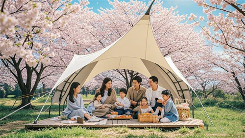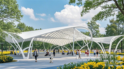 在悠閑自得的野餐時(shí)光里,遮陽(yáng)膜結(jié)構(gòu)不僅提供了必要的遮陽(yáng)避雨功能,更成為了社交互動(dòng)的絕佳場(chǎng)所。家人朋友圍坐膜結(jié)構(gòu)建筑下方,享受美食,暢談笑語(yǔ),春日的美好在此刻凝聚。