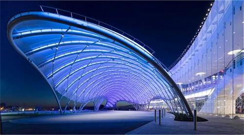 n 夜晚結(jié)合LED燈光系統(tǒng),將雨棚轉(zhuǎn)變?yōu)楠?dú)特的藝術(shù)裝置