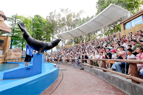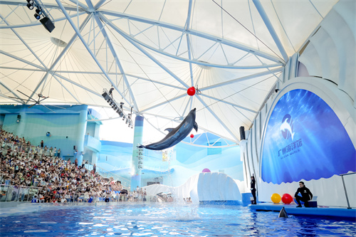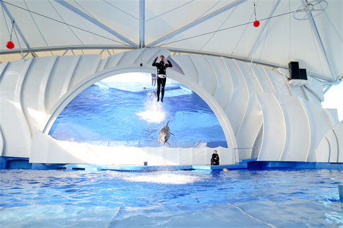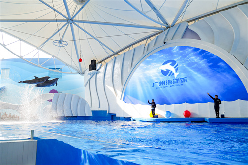 廣州海洋館升級改造后,在精靈海灣(海豚表演場)和海獅館分別使用了膜結構頂棚,既能有效阻擋紫外線,又能在雨天提供遮蔽,確保游客在觀看海豚、海獅等表演時不受天氣影響。