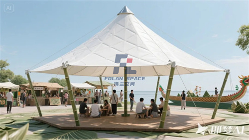 五月的風(fēng)裹挾著粽香,龍舟的鼓點(diǎn)喚醒盛夏。端午節(jié)不僅是文化的傳承,更是匠心的延續(xù)。今年,佛蘭空間以「膜」為筆,將千年傳統(tǒng)與現(xiàn)代科技糅合成一場空間藝術(shù)的盛宴——用輕盈的膜結(jié)構(gòu),為城市編織遮風(fēng)避雨的“粽葉”,為未來書寫“龍舟競渡”的篇章。