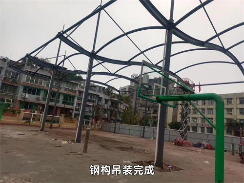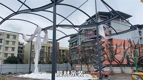 佛蘭空間已竣工案例——四川內(nèi)江第十一小學(xué)校風(fēng)雨球場就采用了綜合吊裝法,具體步驟可看下圖。
