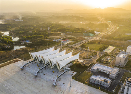 航站樓創(chuàng)新性地采用PTFE拉膜結(jié)構(gòu)體系創(chuàng)造出具有獨一無二的現(xiàn)代航空港造型,鋼結(jié)構(gòu)梭柱與白色拉膜的組合將岳陽的傳統(tǒng)景點——瀟湘八景之一:“遠(yuǎn)浦歸帆”的意境以現(xiàn)代的方式重新演繹,體現(xiàn)濃郁的現(xiàn)代氣息的同時又延續(xù)了傳統(tǒng)地域文化。