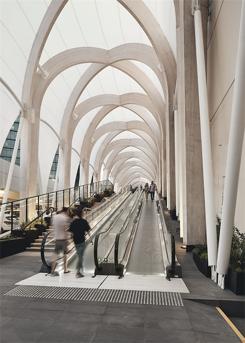 作為一條寧靜的走廊,TheLink長110米、高達(dá)15米,旨在將南半球最大的查德斯頓購物中心與新開業(yè)的美憬閣索菲特酒店連接起來,以此模糊該中心休閑、商業(yè)、零售區(qū)域以及內(nèi)外部空間之間的界限。