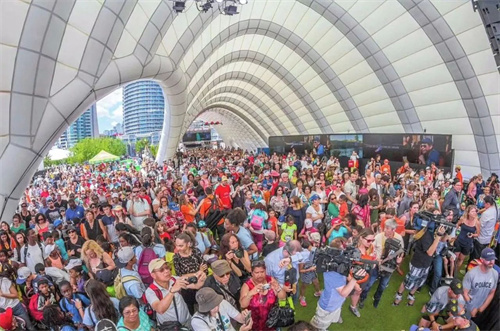 它們完全由膜結(jié)構(gòu)組成,不含鋼結(jié)構(gòu),充分利用可充氣結(jié)構(gòu)的極限。在38天的運動會期間,展館舉辦了500多場現(xiàn)場表演和演講,吸引了超過40萬的參觀者。
