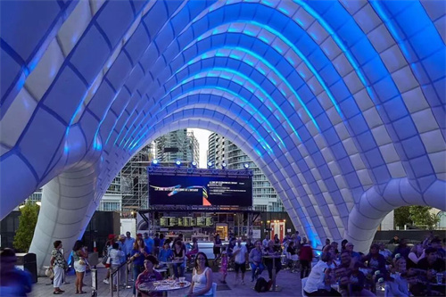 由單根充氣肋拱構(gòu)成的弧形結(jié)構(gòu),跨度通常在10-30米,適用于臨時通道、小型展廳等場景,具有安裝便捷的特點。