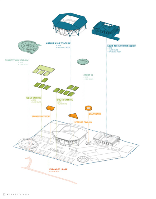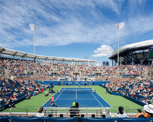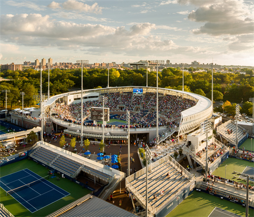 這座全新的Grandstand體育場(chǎng)于2018年秋天完工,是美國(guó)網(wǎng)球協(xié)會(huì)國(guó)家網(wǎng)球中心為迎接當(dāng)年美網(wǎng)而建的核心場(chǎng)館。它是一座擁有8,125個(gè)座位的創(chuàng)新輕量結(jié)構(gòu)體育場(chǎng)。