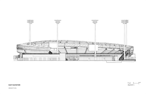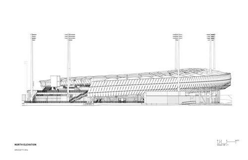 立面上樹(shù)葉般的圖案,讓體育場(chǎng)自然地融入了公園環(huán)境,同時(shí)其創(chuàng)新的形態(tài)和復(fù)雜的幾何結(jié)構(gòu),使其本身成為校園內(nèi)一個(gè)令人過(guò)目不忘的建筑標(biāo)志。