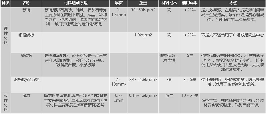 不透光,若使用此種材料作為蓋頂,在實際使用時需要大量照明設施補充光源,大大增加運營成本。