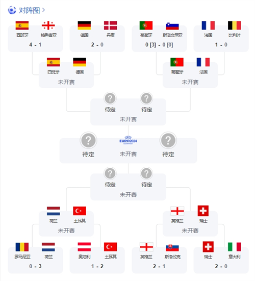 至此,本屆歐洲杯八強全部產(chǎn)生,1/4決賽對陣也已出爐,具體賽程如下(北京時間):