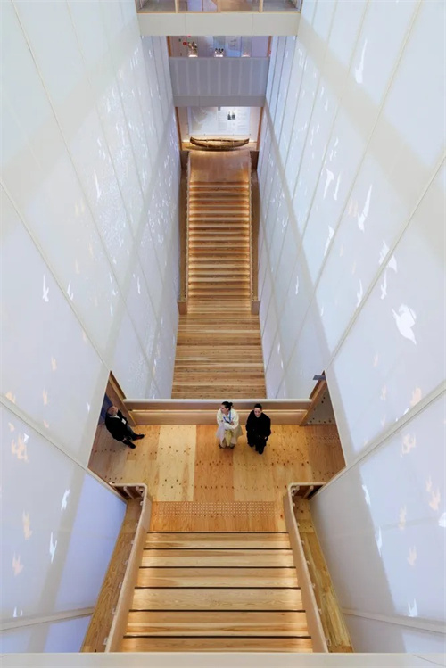 中庭頂部天窗與立面開口形成空氣對(duì)流路徑,結(jié)合木結(jié)構(gòu)的通透性,實(shí)現(xiàn)被動(dòng)式降溫,降低能源消耗。